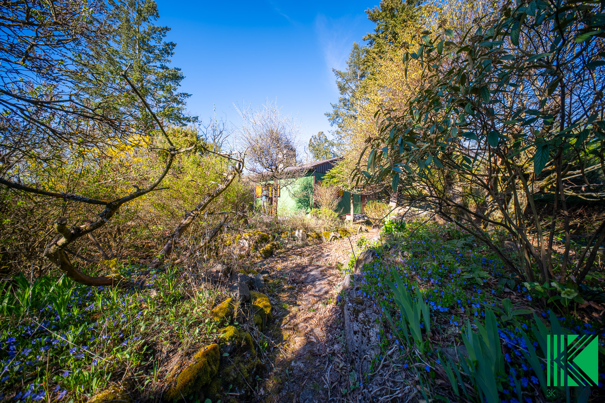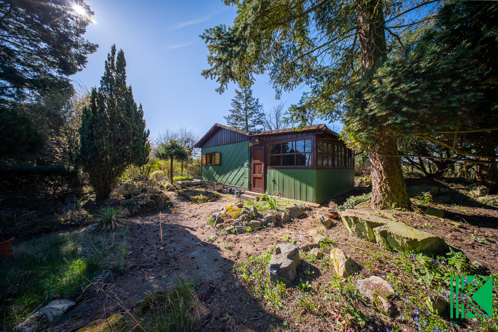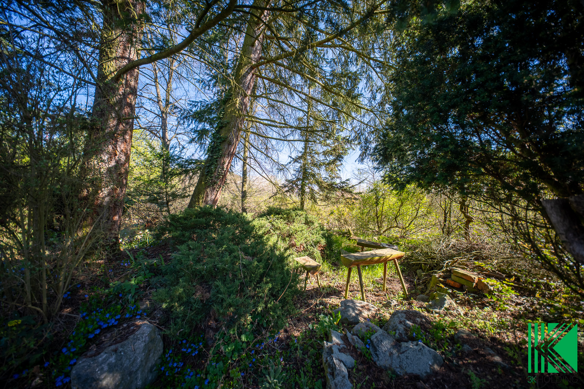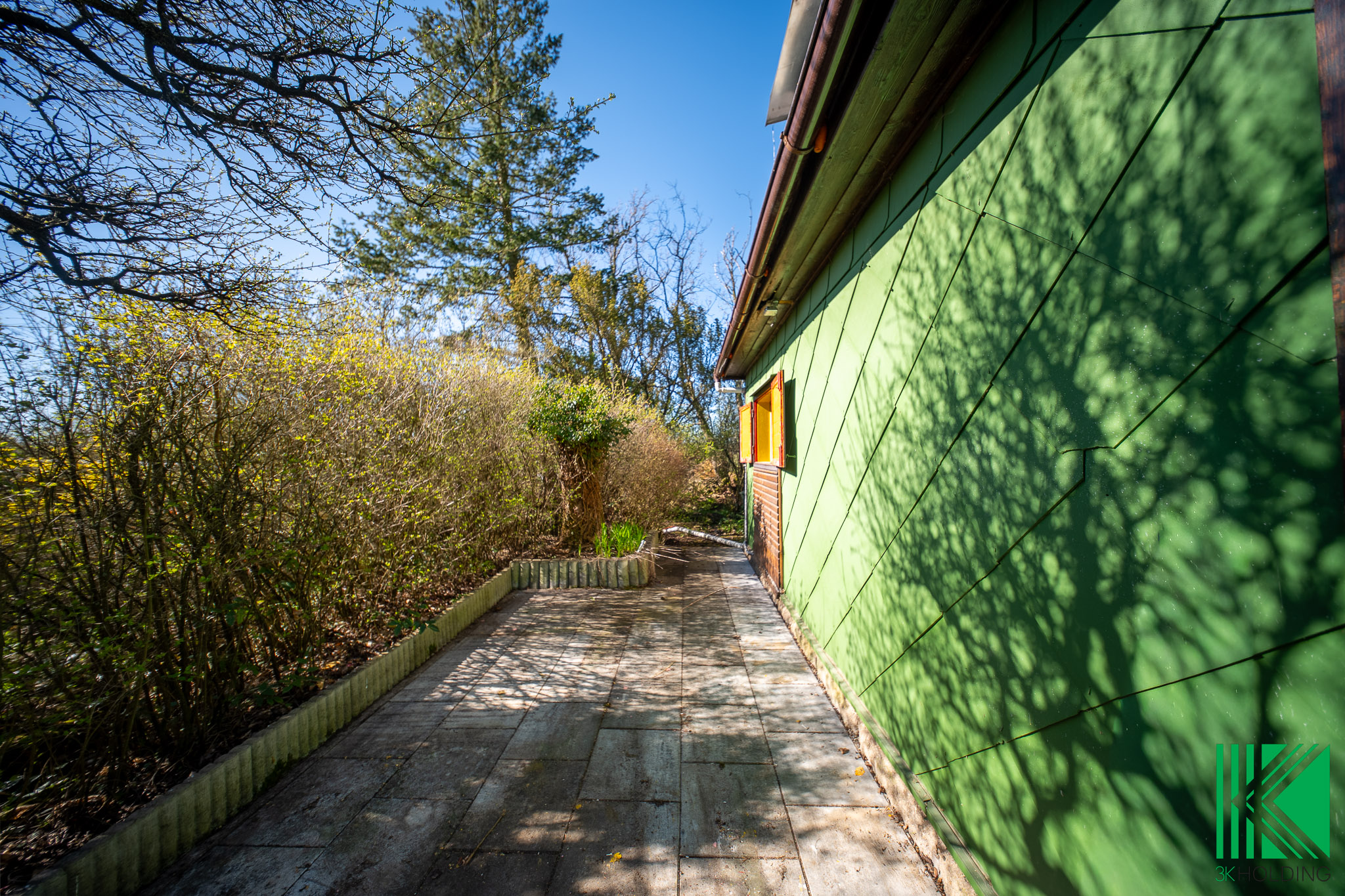 Dominantou pozemku jsou vzrostlé jehličnaté stromy a keře, které zajišťují příjemné soukromí, stín v letních měsících a celkově dotvářejí klidnou atmosféru místa.