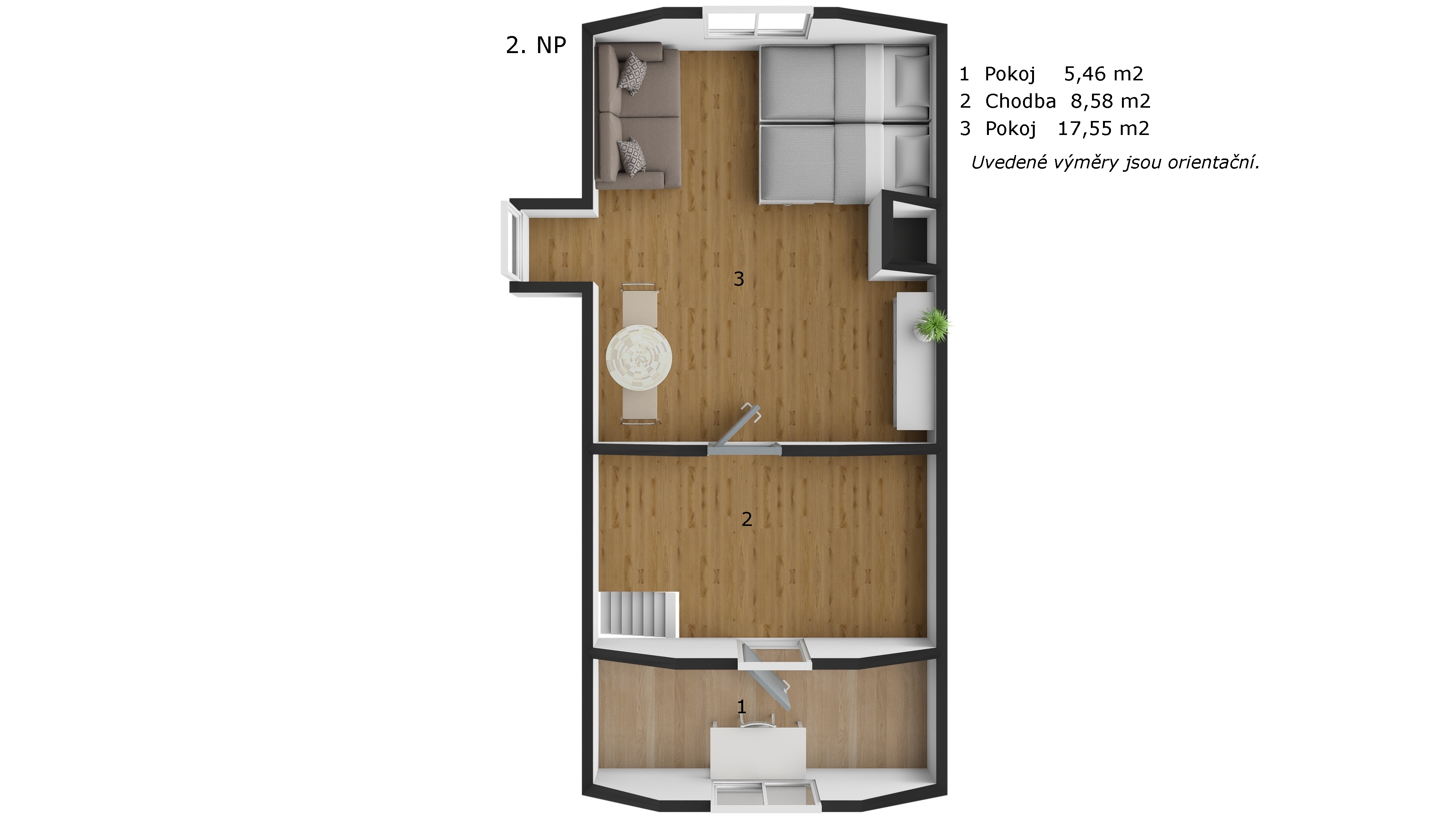 Již nyní chata nabízí dispozici, která se dá skvěle uchopit. Stavba má tři úrovně. V přízemí se nachází pokoj, kuchyň, koupelna, toaleta a samostatný vchod.
